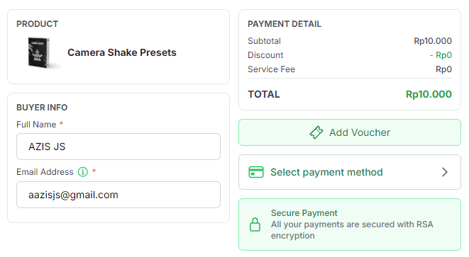 2. Lalu anda akan diarahkan ke Halaman Checkout. Isi detail pemesan (Nama & Alamat Email)