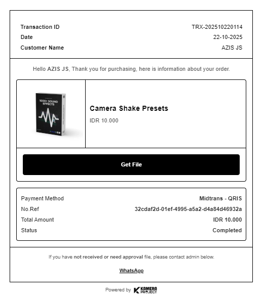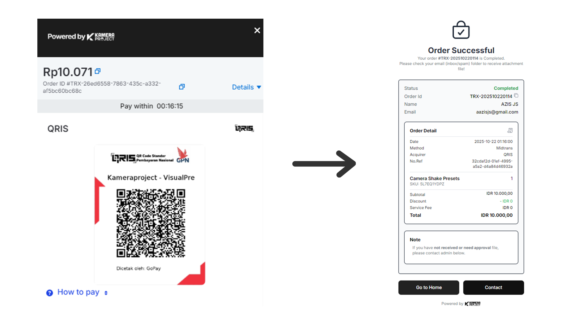 Jika berhasil, anda akan diarahkan ke halaman pembelian berhasil
